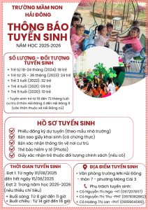 Trường Mầm non Hải Đông là nơi ươm mầm sự phát triển toàn diện cho trẻ nhỏ, tập trung vào việc xây dựng nền tảng kỹ năng sống, tư duy sáng tạo và giáo dục ngôn ngữ, giúp trẻ tự tin bước vào những giai đoạn tiếp theo của hành trình học tập.